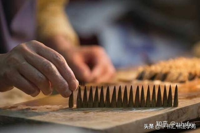 配好的毛料再切出笔锋的形质,它决定了书写是否流畅自然。
